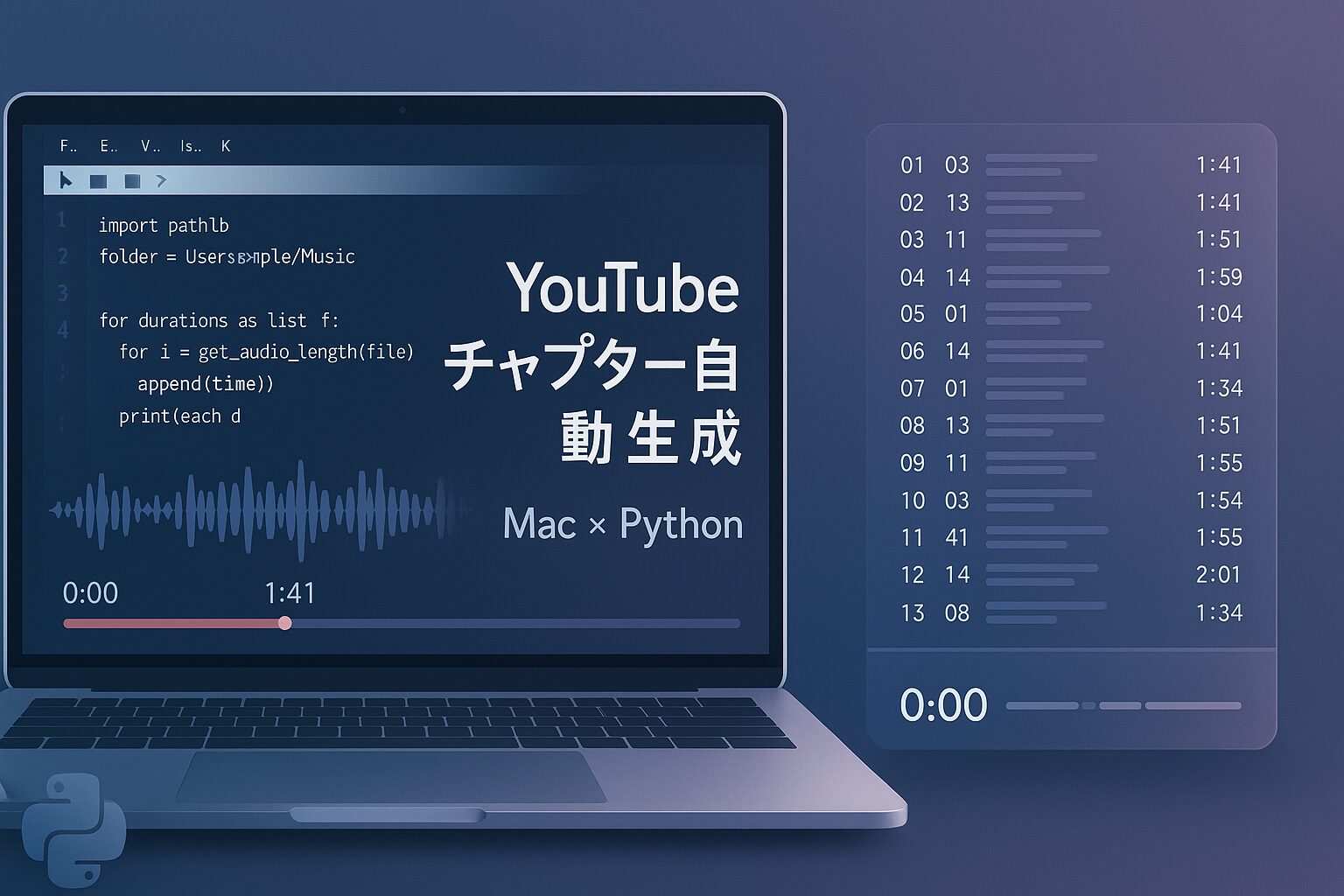 【保存版】Python自動化:フォルダ内の演奏時間集計→YouTube概要欄チャプターの生成 以前も似たサンプルコード紹介していますが、結構使うコード... READ MORE 【保存版】Python自動化:フォルダ内の演奏時間集計→YouTube概要欄チャプターの生成