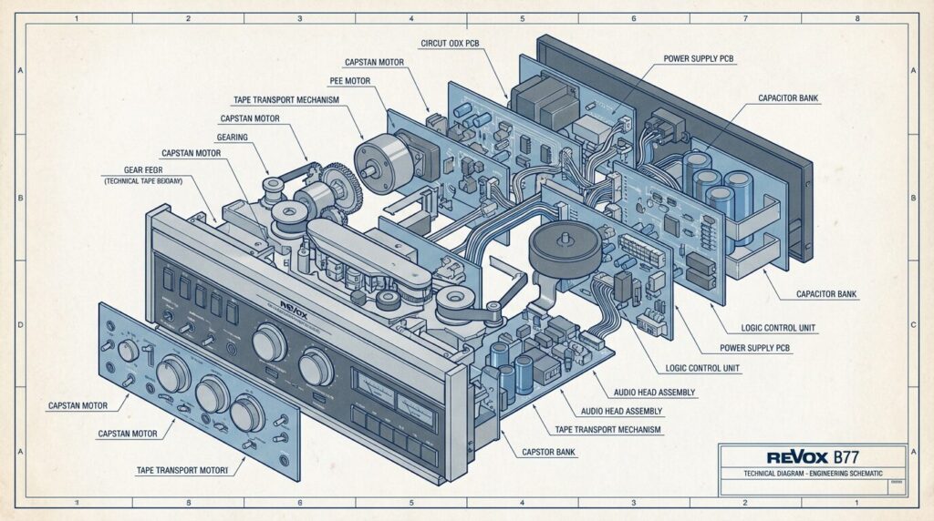 Revox B77Revox B77基板コンプリートマップ(走行・電源・オーディオ編)— 各ユニットの名称と役割を徹底解説 kotaro / 2025年12月7日 Revox B77が名機と呼ばれる理由の