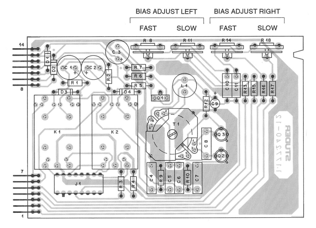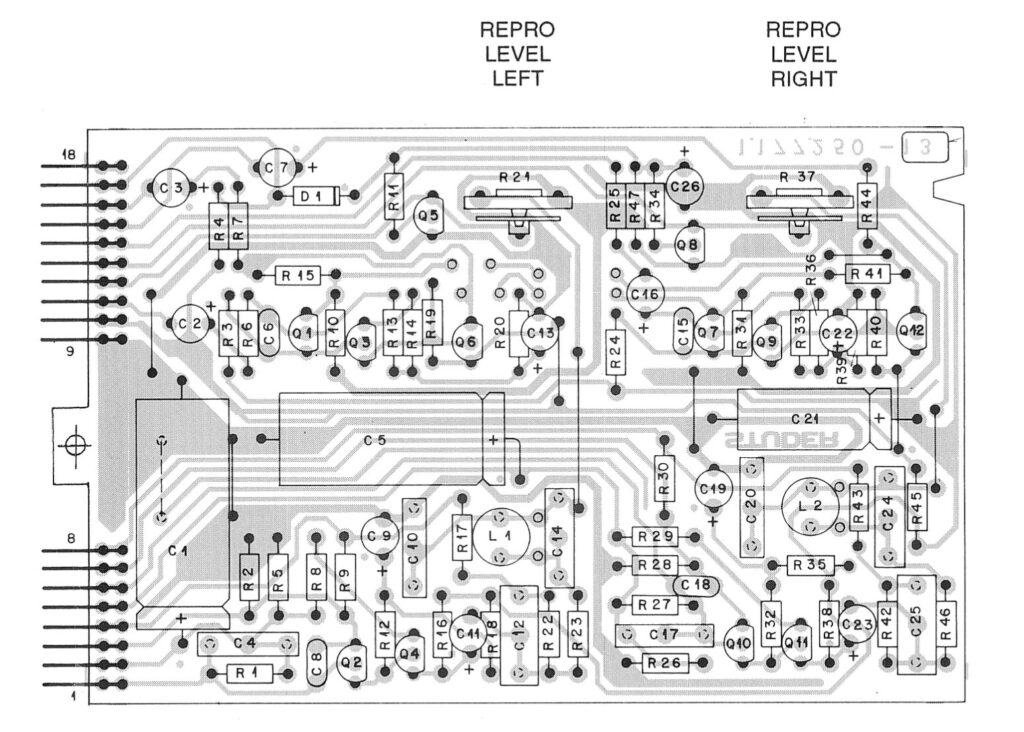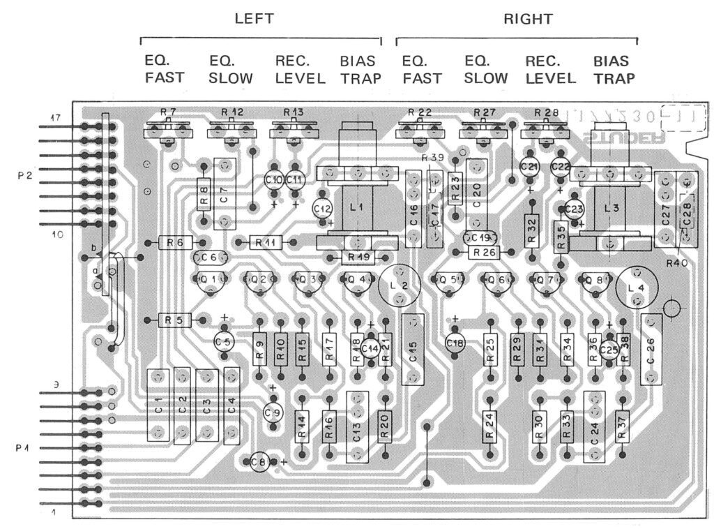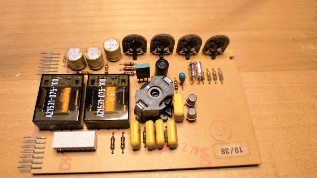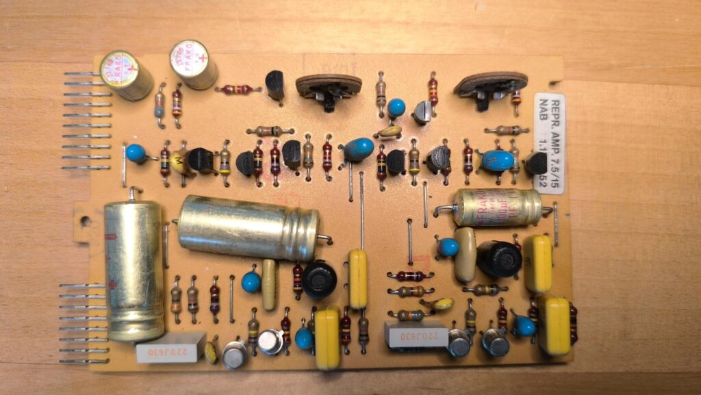 B77の正確なピッチ(音程)は、この基板の精度にかかっています。テープ速度(9.5cm/s や 19cm/s)の切り替えもこの基板が司っています。