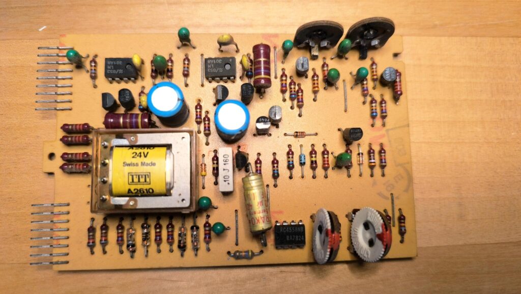 この基板には、悪名高い**「RIFA製コンデンサ」**が使用されていることが多く、経年劣化で発煙・破裂するトラブルの定番箇所です。動作していても予防交換が必須です。
