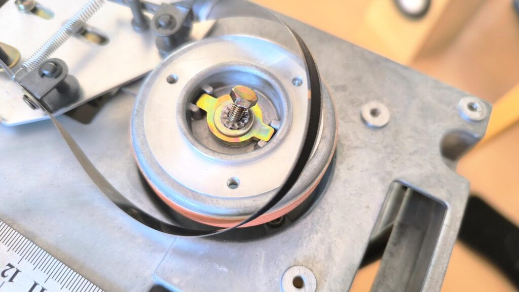 もし調整が甘いと、再生中にうっすらブレーキバンドがドラムに触れてしまい、「シャー…」という異音や、ワウフラッター(回転ムラ)の原因になります。